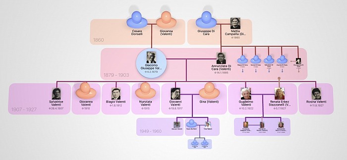 Nonno Giacomo Valenti detto Giuseppe era nato a Comiso il 4.2.1879 e trapassato a Roma il 10.9.1961. Era figlio adottivo della famiglia Valente (contadini) e figlio naturale di Cesare Donselli (avvocato e padrone terriero) e di Giovanna (cameriera). Da giovane andò a lavorare a New York. Ritornato partecipò alla Prima guerra mondiale. La discendenza di Donselli era normanna.